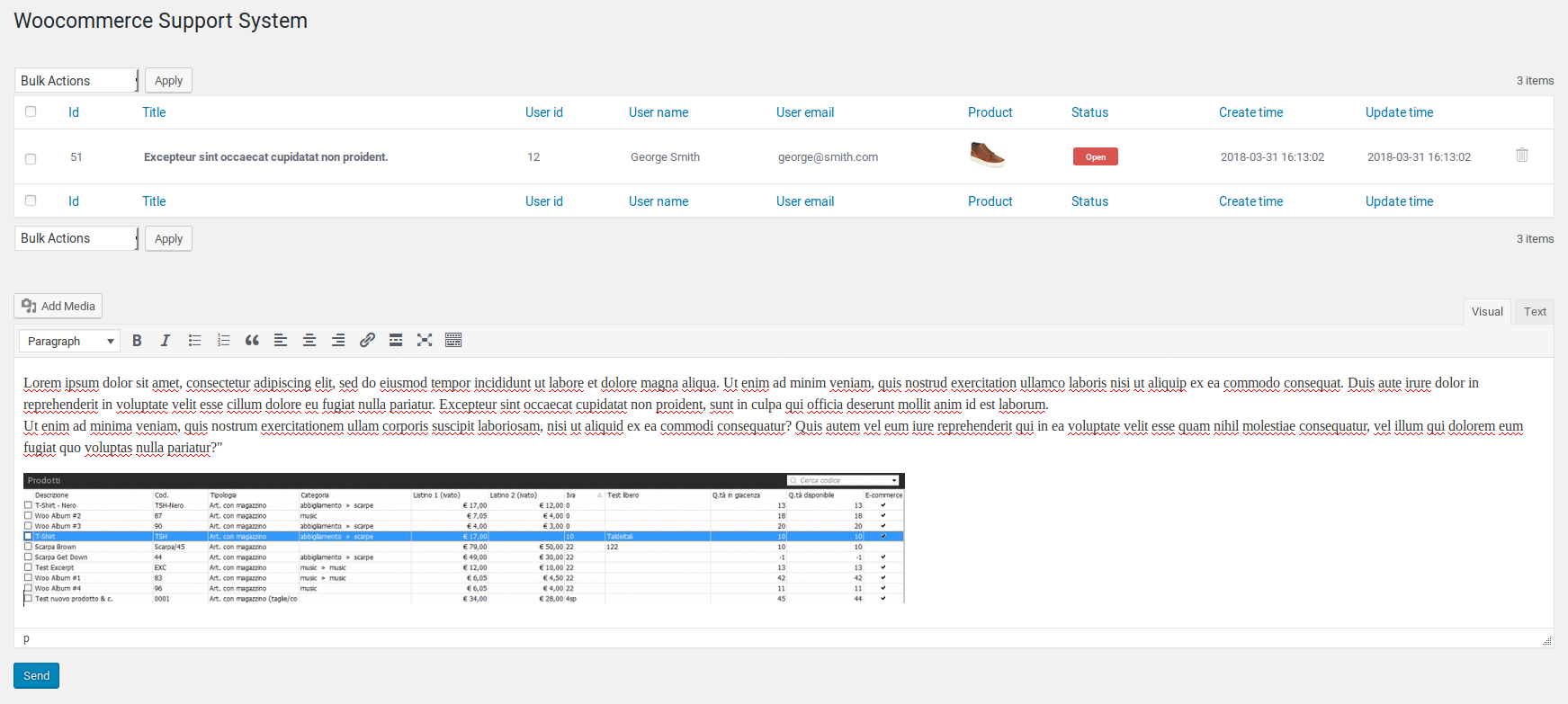 ilGhera Support System for WooCommerce integrates into your WordPress site a simple and fast support system, which will allow your users to open ticket assistance for WooCommerce products purchased, then receiving a notification when a reply is published.