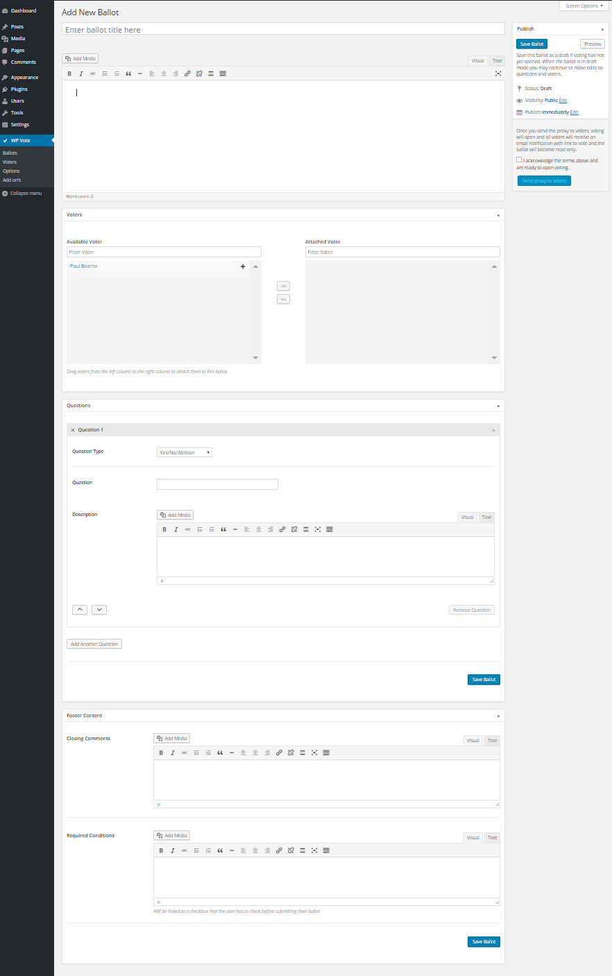 Create a Ballot ( more Questions type including custion and vote proxy available as add-on ).