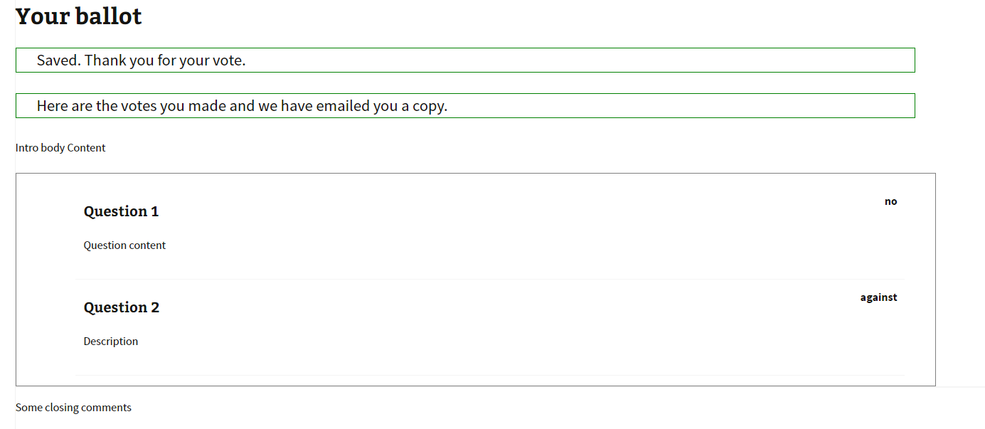 Get an email with your votes for your records.