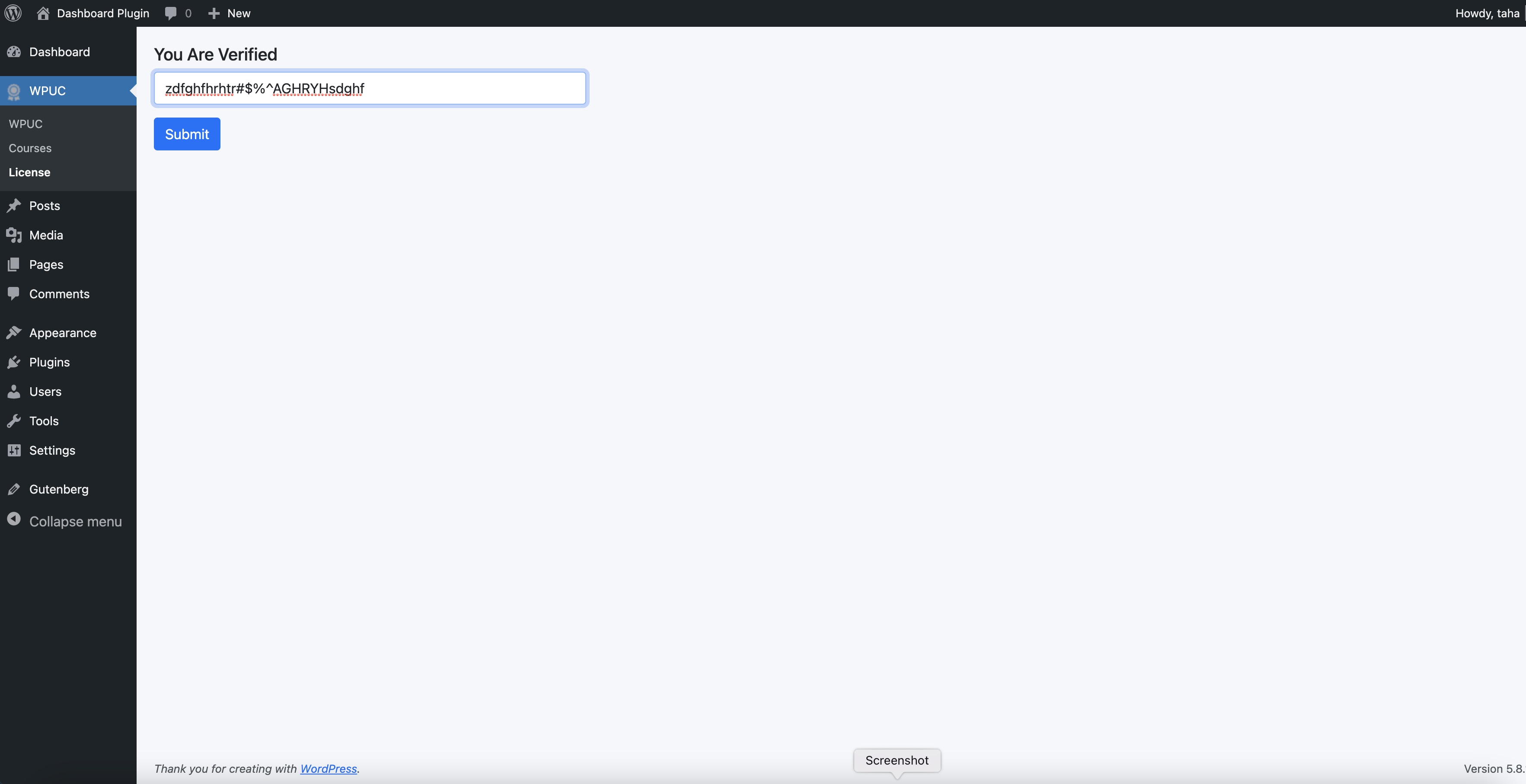 Once activated, WPUser Certificate will add new menu item name WPUC in your WordPress admin.