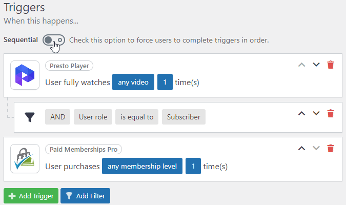 After check the sequential option, the triggers order will appear at left of each trigger: