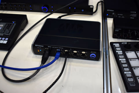 ブース内では、新製品のAVBネットワークスイッチである「SW5E」やミキサー製品などが展示されていた。そんな中、このPreSonusブースで、妙な音を感じたのだ。そう、明らかに片耳だけに強烈に届く音があり、違和感を覚えたのだ。