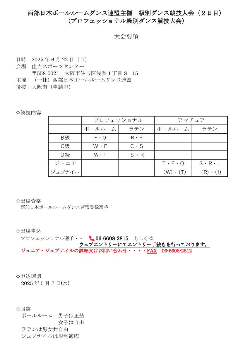 それぞれ、詳細は西部日本ボールルームダンス連盟の公式サイトをご覧お願いいたします。