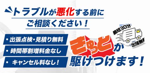 ✅ きゅっとは最短即日対応で緊急時の復旧スピードに強みがあります。