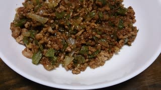 ピーマン数個とひき肉をカレー味で・・