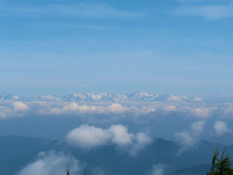 烏帽子岳と後方に北アルプス。槍ヶ岳や穂高岳が見えていました。写真ではよくわかりませんが。