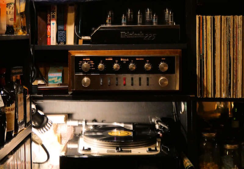 バックカウンターにあるオーディオ機器。