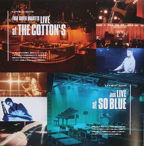 上は、ピアニストの沢辺雪折が、他のバンドの一員として出演したジャズクラブ「THE COTTON'S」、下は、3人が出演したジャズクラブ「SO BLUE」。モデルは、東京丸の内の「COTTON CLUB」と、南青山の「BLUE NOTE 東京」ですが、よく描けていて、雰囲気が出ています。