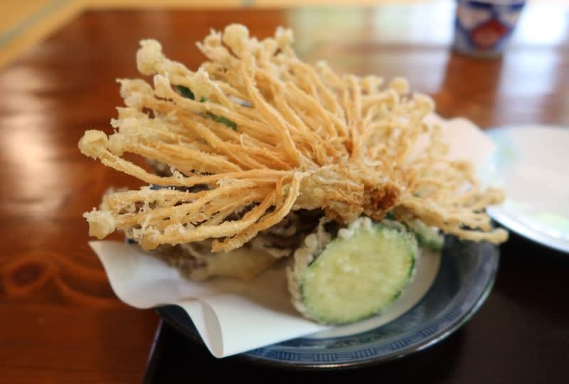 天ぷらは、えのき、舞茸、さつまいも、ナス、インゲン、ピーマンだったと思います。