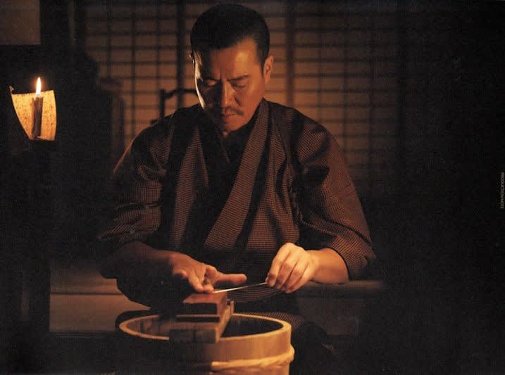 梅安(豊川悦司)が仕掛けの針を研いでいるところ。