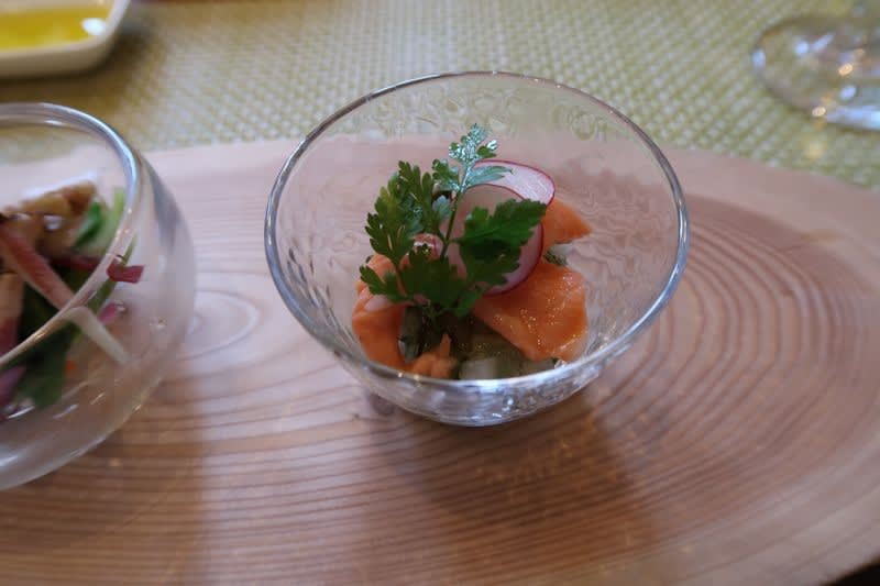 ランチは4つのコースから選択できますが、せっかくなので鹿肉のグリエ(焼き物)がメインのものにしました。鹿肉は何度もいただいていますが、こちらのお店の料理は、肉の質やあわせるソースもよくて美味しくいただきました。下処理などかなり手間がかかっていると思います。前菜からデザートまで満足しました。