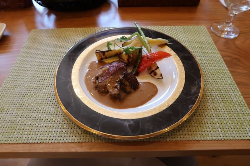 メインの鹿ロース肉のグリエ。付け合せの野菜もソースと絡めてあっていい味でした。