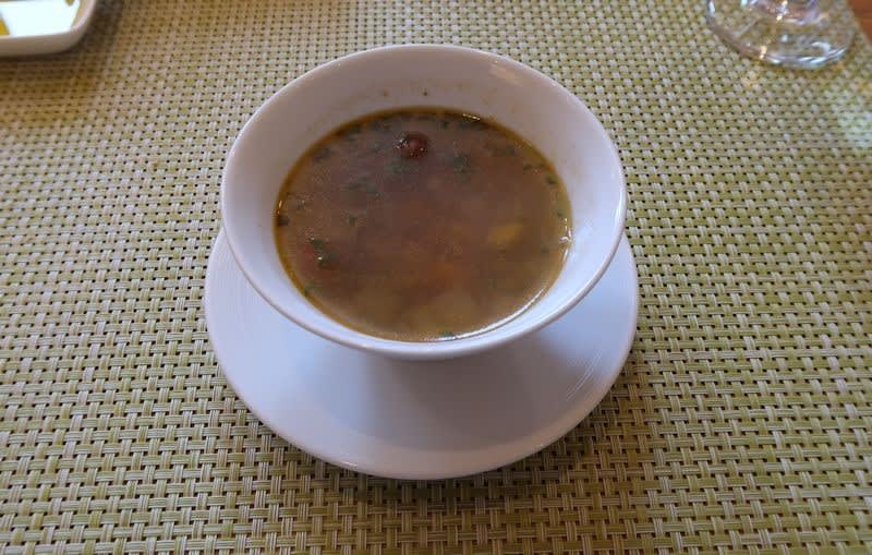 17種類の野菜のブイヨンスープ。種類がよくわからないものも入っていました。