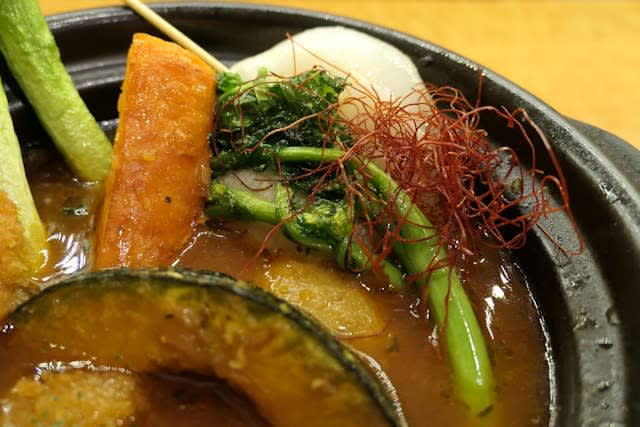 この張り紙をみたら、ロースカツとアスパラガスを食べたくなり、春限定の「春の野菜と手仕込み国産豚ロースカツのスープカリー」を注文。