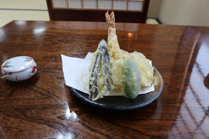 ざるそば(同店では「手打ちそば」と書いてありました。)と、天ぷら一人前を注文。そば、汁ともに上質でとても美味しく、堪能しました。もちもちした食感なので、群馬県独自のそばの品種なのかもしれません。