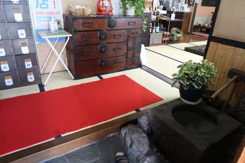 店内。畳ですが、左奥にはテーブル席があります。テーブル席は、既にお客様でいっぱいのようでした。