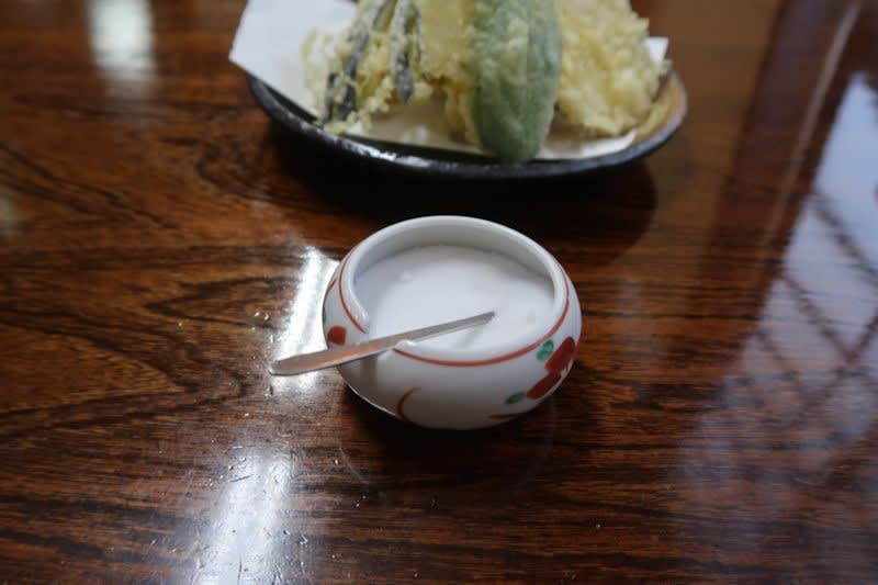 薬味。ダイコン、ワサビ、ネギ。ネギには柚子の皮が混ぜてあって、爽やかな香りがしました。