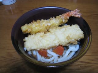 年越しうどん。海老天・イカ天の『紅白天』でした。