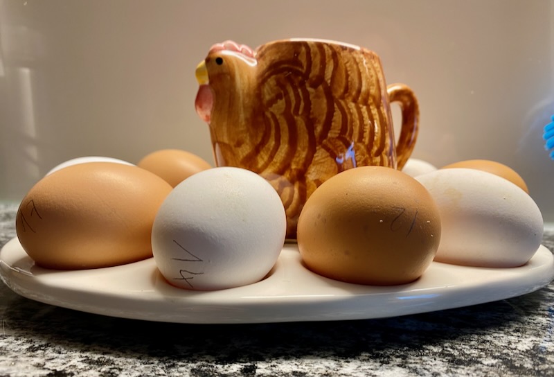 The chickens don’t like the snow and make a mess inside their coop. As soon as it gets a little warmer, they start laying eggs again, large, well-formed eggs with sunny yellow yolks, harbingers of spring. Forwards. When the temperatures drop, the nest remains empty. Backwards.