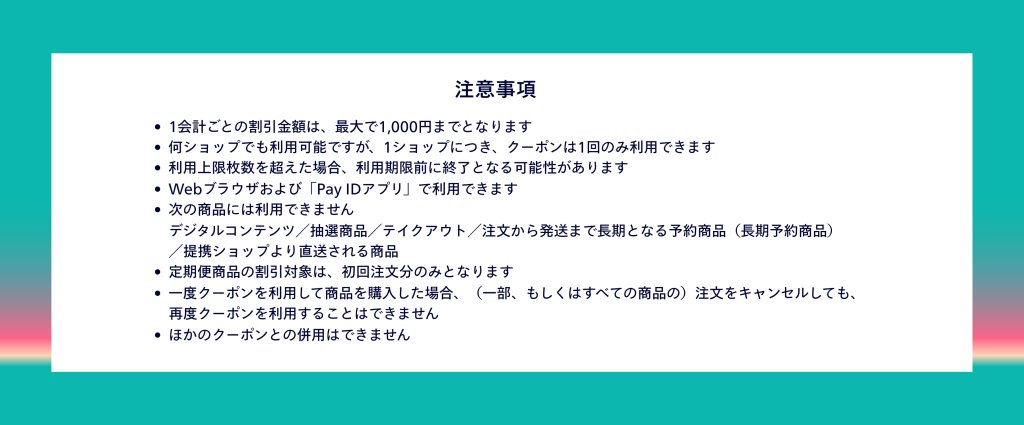 本記事では、クーポン告知にご利用いただける画像素材やテキスト、ショップ設定方法をご紹介いたします。