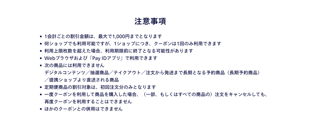 ※クーポンは何度でも(=複数ショップで)使用できますが、1ショップにつき1回のみ使用できます。
