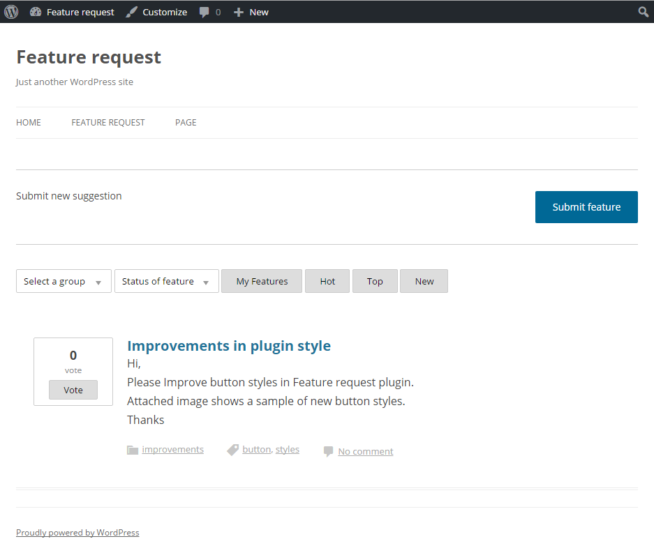 feature-requestdirectory to the/wp-content/plugins/directory - Activate the plugin in the Plugin dashboard