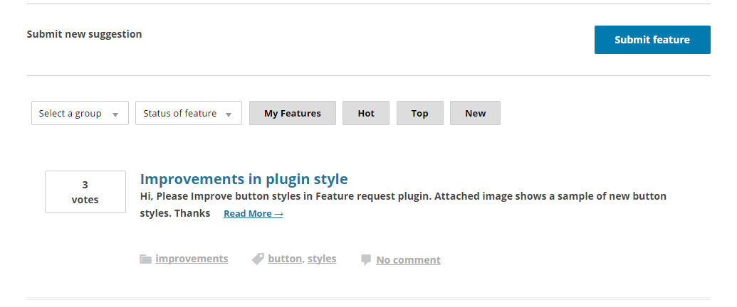 Note: You can’t use the plugin without any groups in this version. So make sure at least one group exists for feature requests.