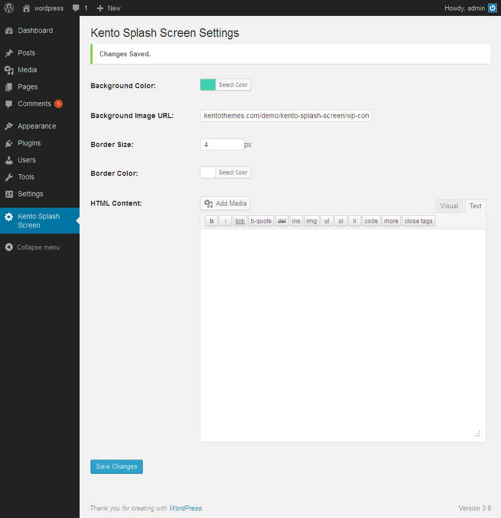 - After activating you will see a menu on left side and go to “Kento Splash Screen” setting page and change your setting and save it.