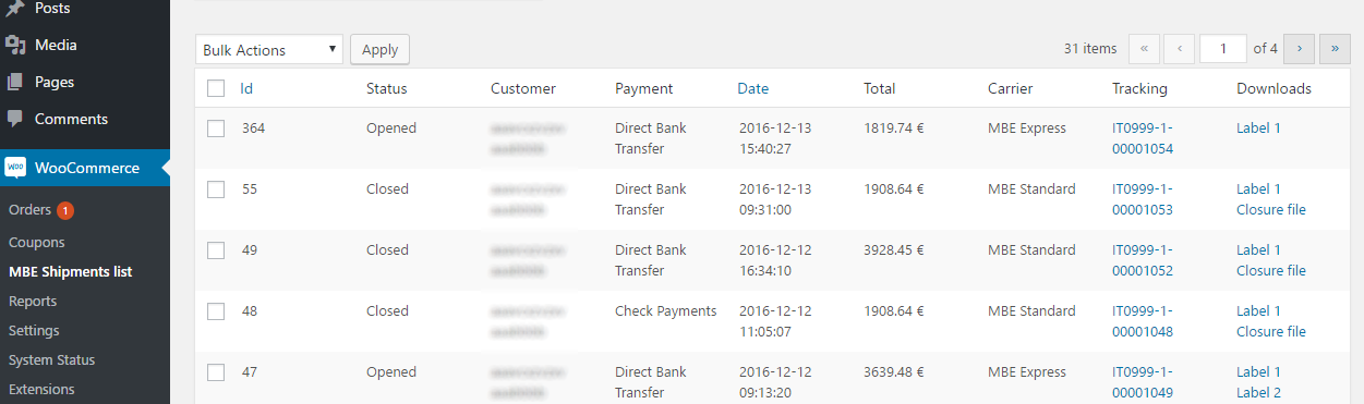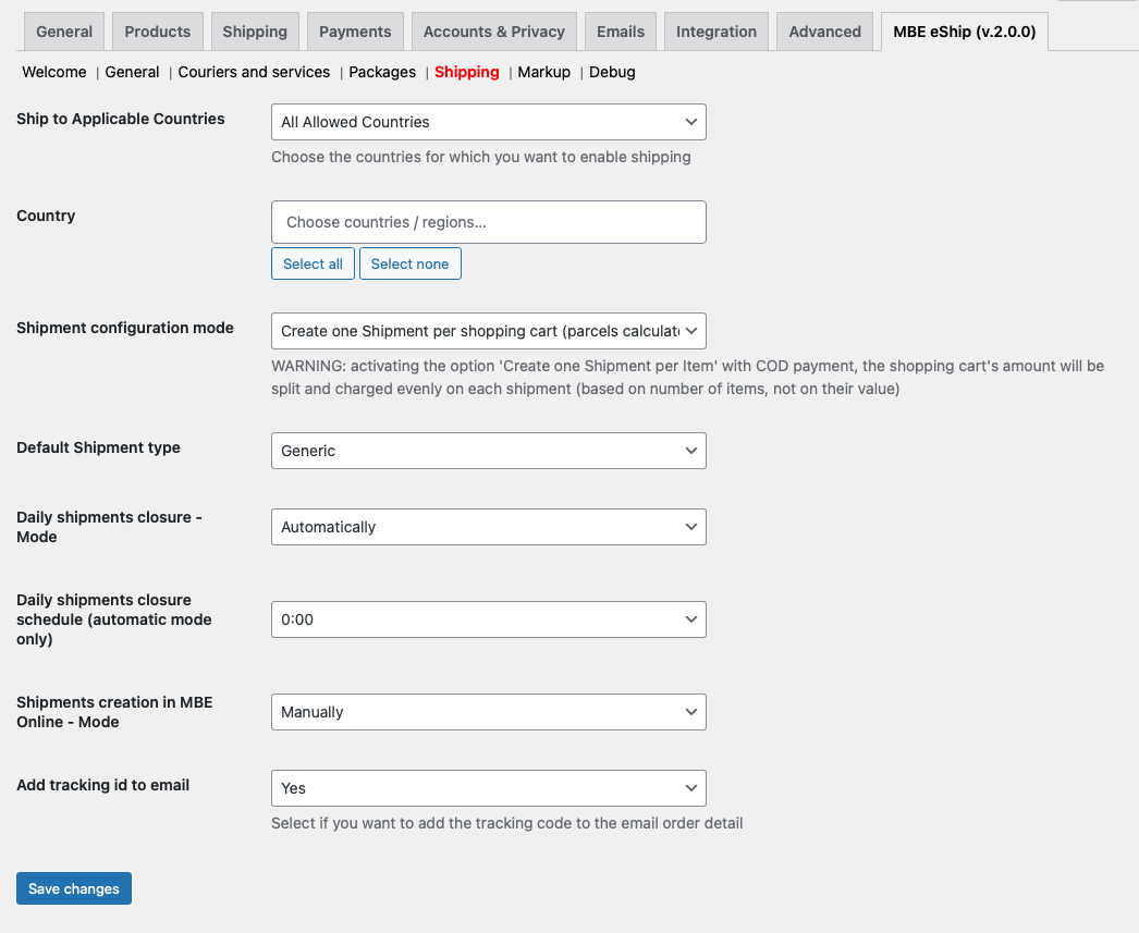 MBE eShip plugin is currently available only for Italy, Spain, Germany and Austria. Once the plugin is installed, contact your MBE Center to retrieve your activation codes and request your customized tariffs. If you’re not yet in contact with an MBE Center, you can find the most convenient for you with our Store Locator.
