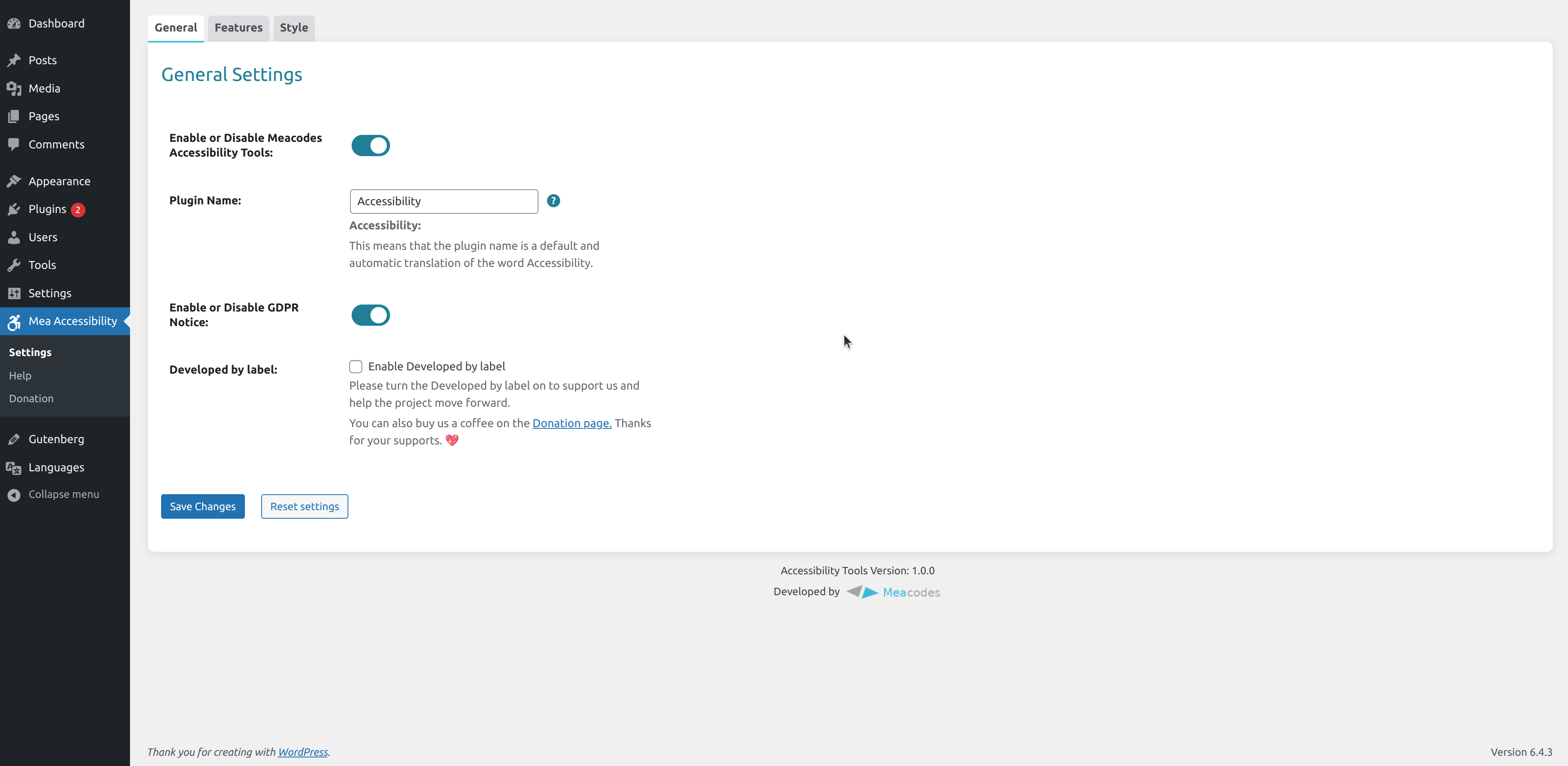 Contributors“Meacodes Accessibility Tools” has been translated into 2 locales. Thank you to the translators for their contributions.