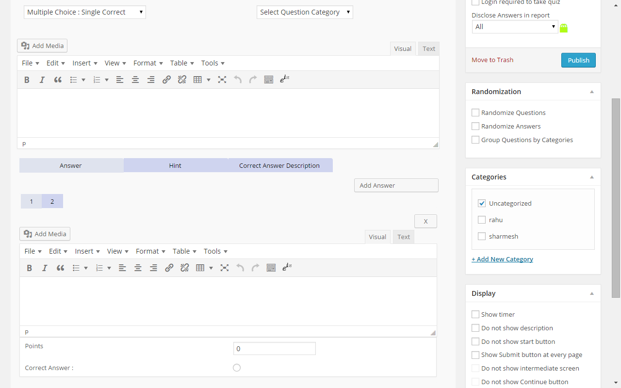 - Create quiz with multimedia rich content.