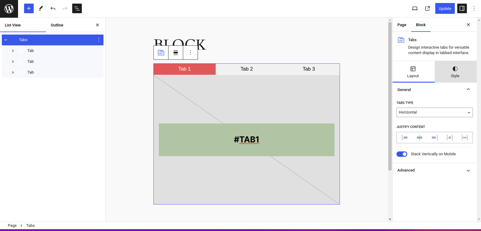 👉 Tabs Block: Present content in a tabbed format for a clean and organized look