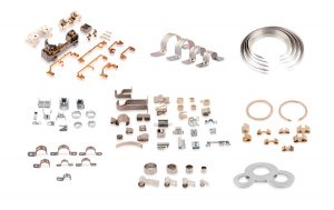 BSF is known for its sheet metal Stamping technology and process. Our specialization lies in precisely stamping miniature components from thin gauge metal sheets, with the ability to achieve tight tolerances of +/- 0.001″. We accommodate both prototyping and high volume production runs.Our new range of products in this segment includesFlat Spring metal chips used in the modern day MCBs that automatically switches off the electrical circuit during abnormal condition of the network