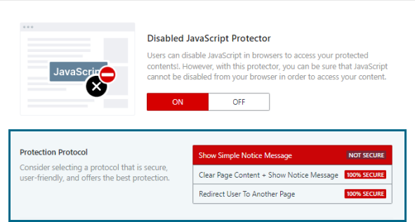 Step 4: Visit Disabled JavaScript Protector and turn it on so that JavaScript will be protected.