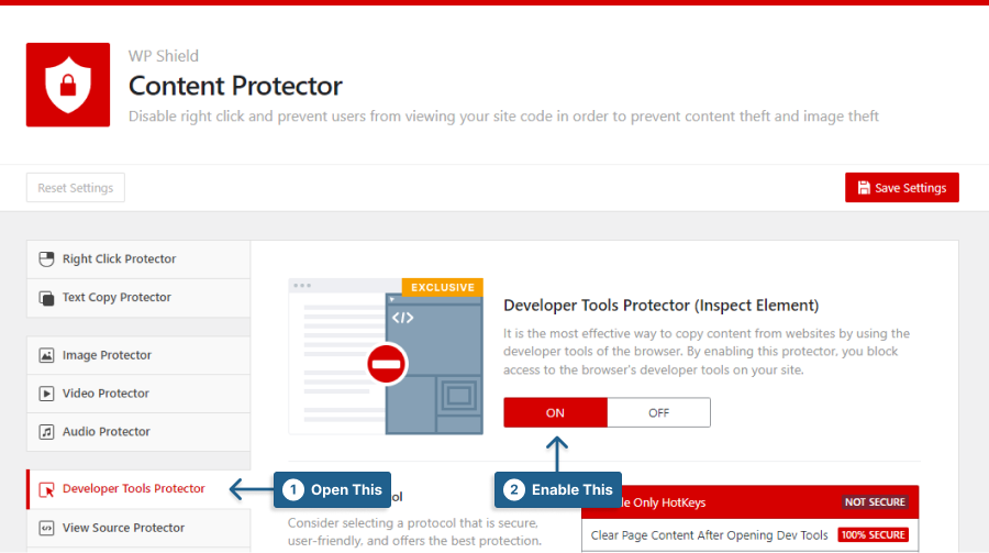 Step 4: Go to Developer Tools Protector and turn on the Developer Tools Protector (Inspect Element) option.