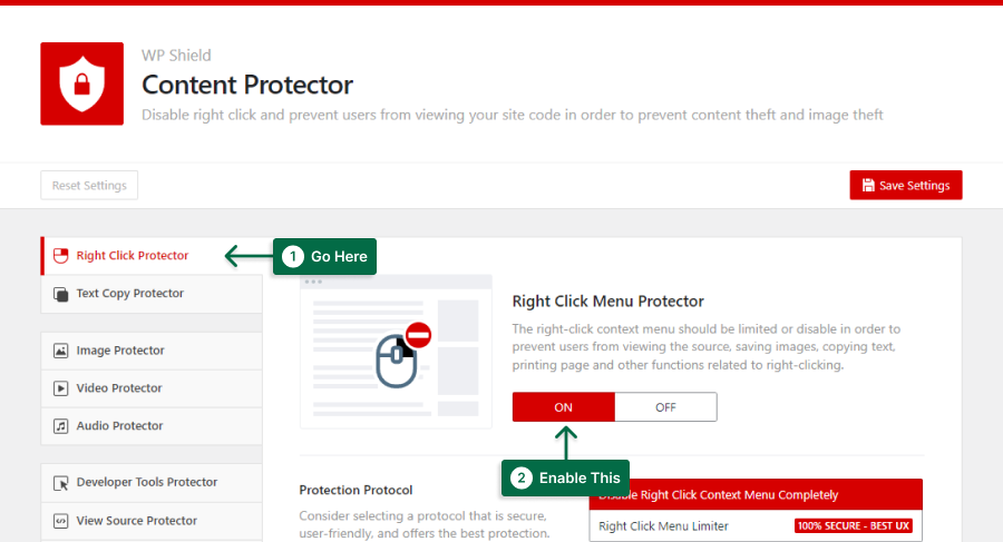 Step 4: Clicking on Right Click Protector will allow you to enable the Right Click Menu Protector.