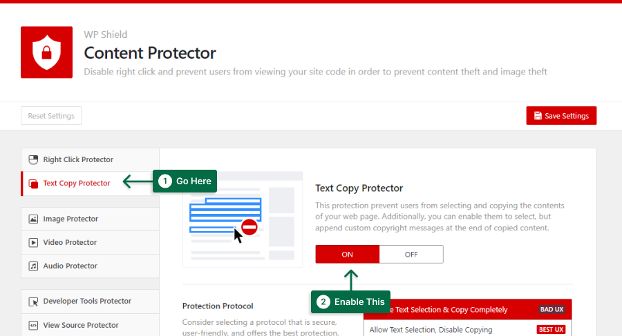 Step 2: Go to Text Copy Protector and enable the Text Copy Protector.