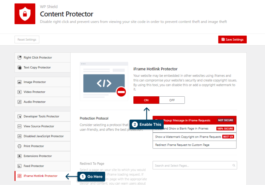 3.Show a Watermark Copyright on iFrame Requests: This protocol adds a watermark to the iFrame. This is the best option for the website UX.