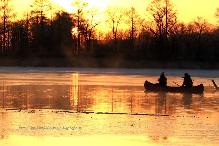 こんばんは。昨日の丹頂ガイドは、東京からのご夫婦で、中の良い楽しいガイドをさせて頂きました。今日は朝6時からソデグロツルが来ているという事で、そのツルを探しに出かけ、12時に自宅に戻りましたが中々探すことが出来ずに、残念な思いで帰宅、昨日の疲れと今日の疲れとで、直ぐに爆睡、16時近くに目が覚めました。さて、今日は、夕日に向かって川下りの 6 です。15時31分 漸く夕日の雰囲気に近づいてきていま...