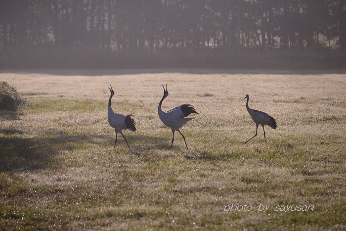 今朝のタンチョウ~鳴き合う~