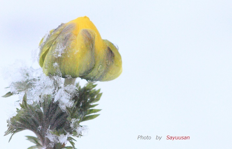 フクジュソウ~撮影中に雪が~