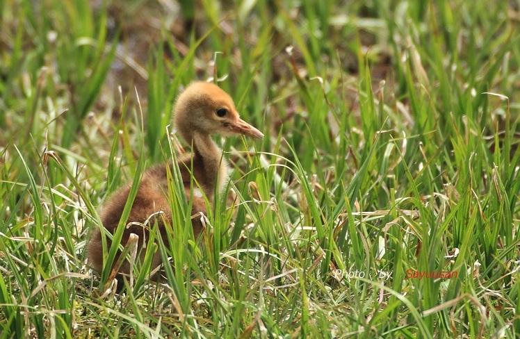 おはようございます。今日はタンチョウの雛の面白い行動を載せてみました。 あれーっ! 水の中にひょっとしたら食べ物があるぞー、 これは褒められるかもねー。 あれー、なんだこれは!水草かー、 上手くいかないなー、残念だなー、母さんや父さんみたいに上手くいかないもんだなー。面白い場面でした。こんなことを通して、両親の真似をしながら成長してゆくんですね。まだ生まれて4~5日目なんですよ。感動しちゃうなー...