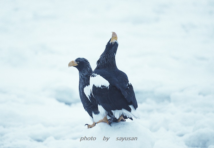 みなさんおはようございます。今朝は久しぶりに太陽の見られる気分良い朝でした。自分はぬくぬくとした書斎から眺めていました。撮影時間:6時19分 NIKON D610 NIKKOR 80-400mm f/4.5-5.6G ED VR f/5.6 ss1/320 ISO-3200 手持ち左側のオオワシを撮影していて、目を離したすきに右側のオオワシが飛び込んで来たのです。右側のオオワシの足元にもスケソウダラが握られていました。この後の画は撮...