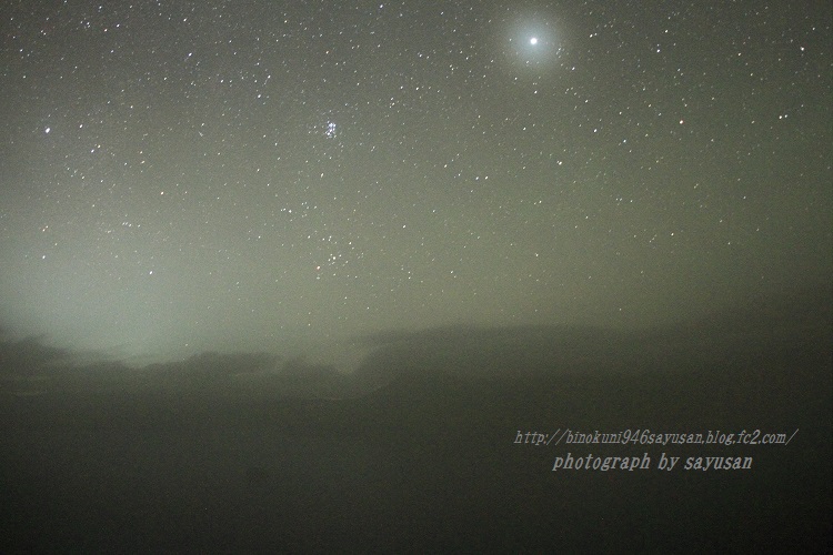 おはようございます。オーロラシリーズが終りホッとしている所です。今日は、ブロ友と一緒に撮影した、摩周での星の画をアップします。撮影日:2015年9月22日 撮影時間:22時52分 撮影場所:摩周第1展望台この日の夜は霧が出ていて、晴天と言うわけではなかったです。今夜はこれで止めようと言いながら、摩周第1展望台のトイレの横の大きな木を見て、また2人で星の画を撮り始めました。霧がだんだ...