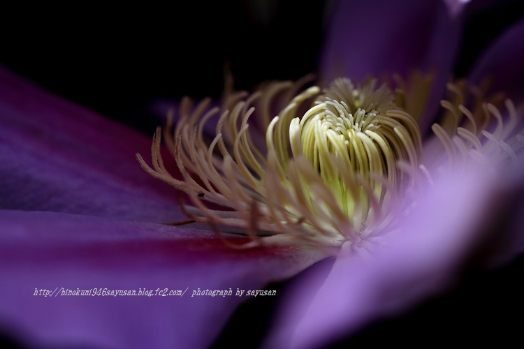 おはようございます。今日は良い天気になりそうです。我が家の小さな庭は、余計な草が伸び放題になり、午前中に草刈りをと思っています。今日もクレマチスですが、花の撮影は難しいと思いながら撮影しています。Canon EOS 7D TAMRON 90mm F2.8 MACRO ISO-200 F/3.5 ss1/1600 -0.7補正 花の間から光が差し込み、花芯に光が当たってるところを狙ってみました。今日も観て頂きありがとうございます。...
