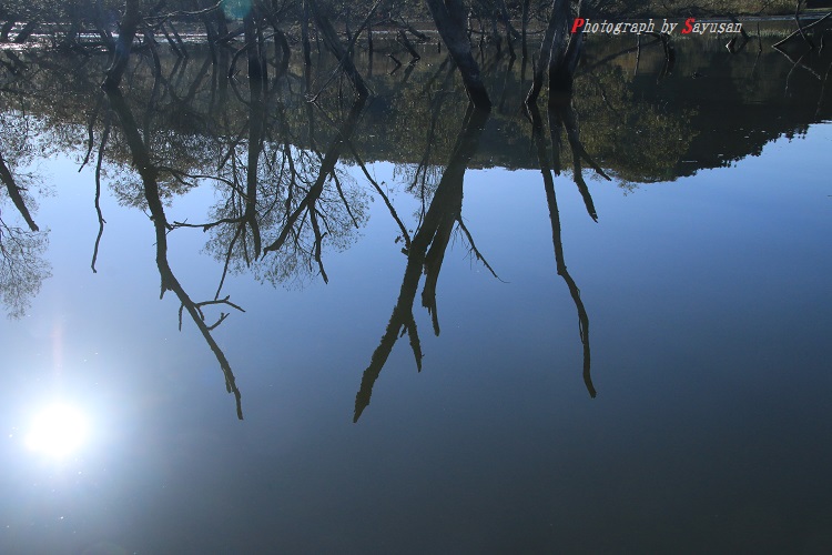 おはようございます。今回の川下りも終盤に近づいてきました。未だ全てを整理していないんです。もう暫らくお付き合い下さい。7時18分 東側の空に少し蒼空が見え始めました。あれだけ濃かった霧も漸く薄くなってきたのかなーと思いながら、ゆったりと流れる川面を眺めていました。すると細い水路を進んでいましたねー。(カヌーのへさきを少し入れてみました。)「寄り道の達人」は、水鏡になっいる場所に案内したかったのでし...