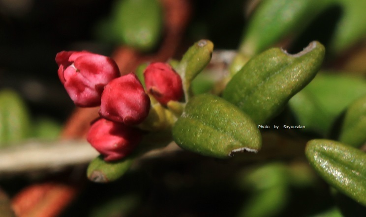 おはようございます。矮性のエゾムラサキツツジの花の撮影していた時に高山植物のミネズオウの蕾があることに気が付いた。高さ5cmに見たない高さに僅か5mmの花弁つけた可愛らしい花である。高山帯では6月~8月にかけて花をつけるが、平地では雪も解けるのが早く暖かいのでこの時期に花をつける。 蕾は1mmぐらいの大きさで可愛らしいく、見逃してしまう。 90mmマクロで撮影し更に拡大トリミングした。 4...
