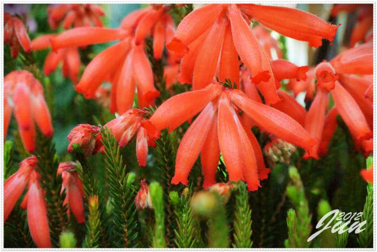 写真は冬の花「エリカ・ウインターファイヤー」です。樹自体は小さく目立ちませんが、花色に目がいきますね!そろそろ花期が終わりなっています。