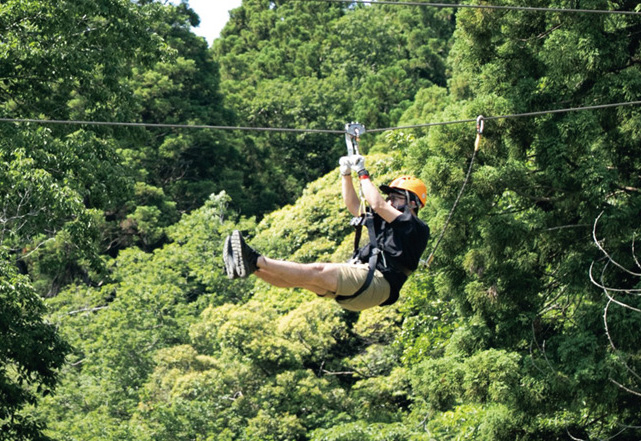 何もせずゆっくりと自然に身を置くのもよし。思いっきり遊ぶもよし。どちらも叶う農園リゾート。空を飛んでいるかのように森の斜面を滑るジップラインは幼いころの記憶がよみがえるような爽快感で人気を集めている!