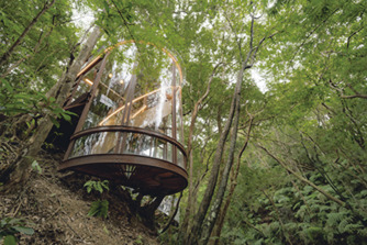 沖縄県名護市のやんばるの森の中に佇む日本唯一のツリーハウスリゾート。自然との共存をテーマにサステナブルな取り組みもしている。都会では味わうことのない生活を体験してみて。